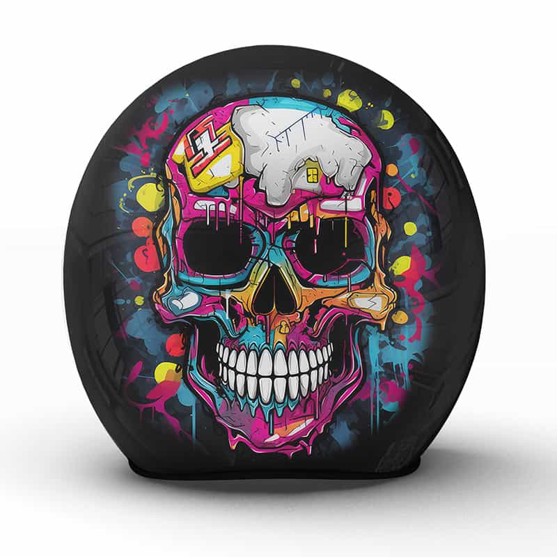 Der „Alive“ Jethelm ist ein wahres Kunstwerk aus unserer Manufaktur, das mit seinem explosiven und farbenfrohen Totenkopf-Design die Essenz des Lebens und der Vitalität auf den Straßen einfängt. Dieses Motiv, eine lebendige Ode an die Freude des Fahrens, strahlt Energie und einen Hauch von Unsterblichkeit aus, perfekt für den leidenschaftlichen Biker, der jede Fahrt zelebriert.