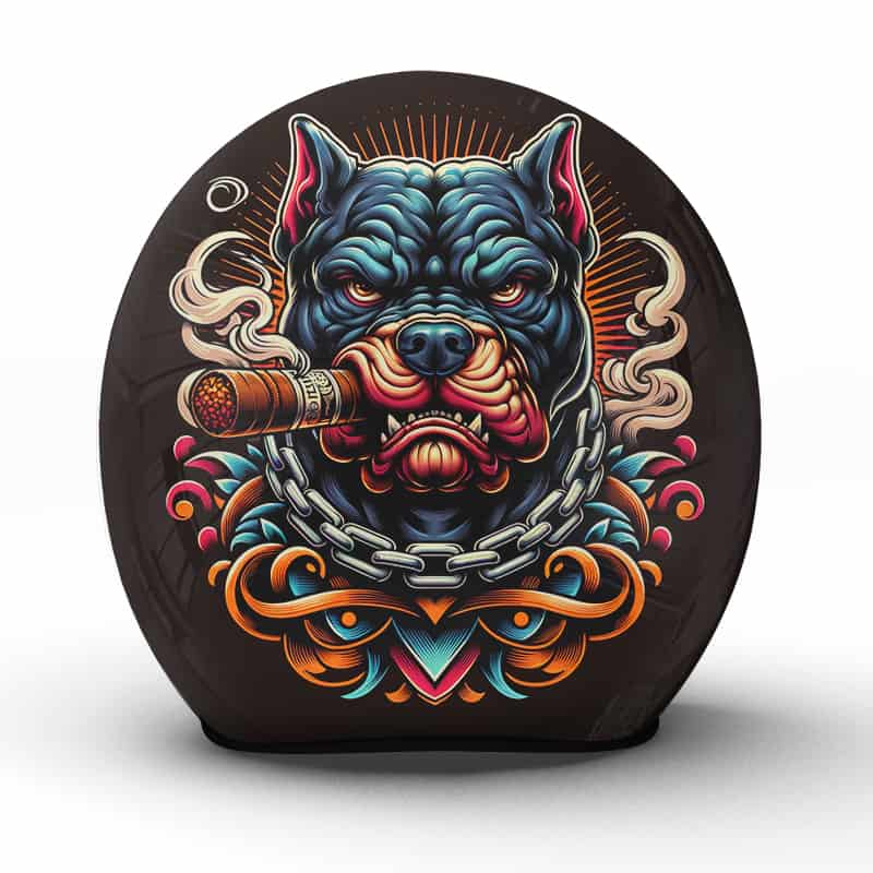 Dieser Motorradhelm, gekrönt mit dem beeindruckenden „Dawg“-Motiv, verkörpert Stärke und Entschlossenheit. Das Gesicht eines majestätischen Rottweilers, der eine Zigarre genießt, ist umgeben von stilisierten Mustern und lebhaften Farben, was die Persönlichkeit und den Charakter des Trägers unterstreicht. Ein Kunstwerk unserer Manufaktur, das mit handwerklichem Geschick und Sorgfalt bis ins kleinste Detail gefertigt wurde. Dieser Helm ist nicht nur ein Symbol des Schutzes, sondern auch des Stolzes – ein echtes Statement auf der Straße.