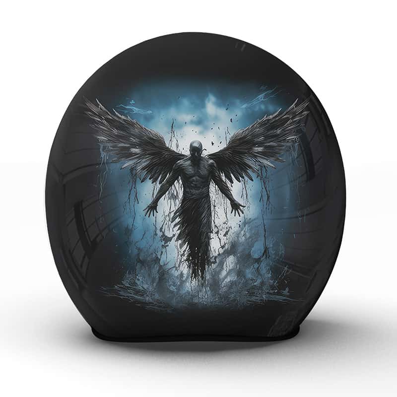 Der „Fallen“ Motorradhelm, ein kunstvolles Produkt aus unserer Manufaktur, zeigt ein dramatisches Motiv eines gefallenen Engels, dessen Flügel kraftvoll in den Himmel ragen. Dieses Bild fängt die Komplexität des Lebens und der menschlichen Erfahrung ein, symbolisiert durch die Dualität des Aufstiegs und Falls, was bei Fahrern ein starkes Gefühl von Resilienz und Rebellion weckt.