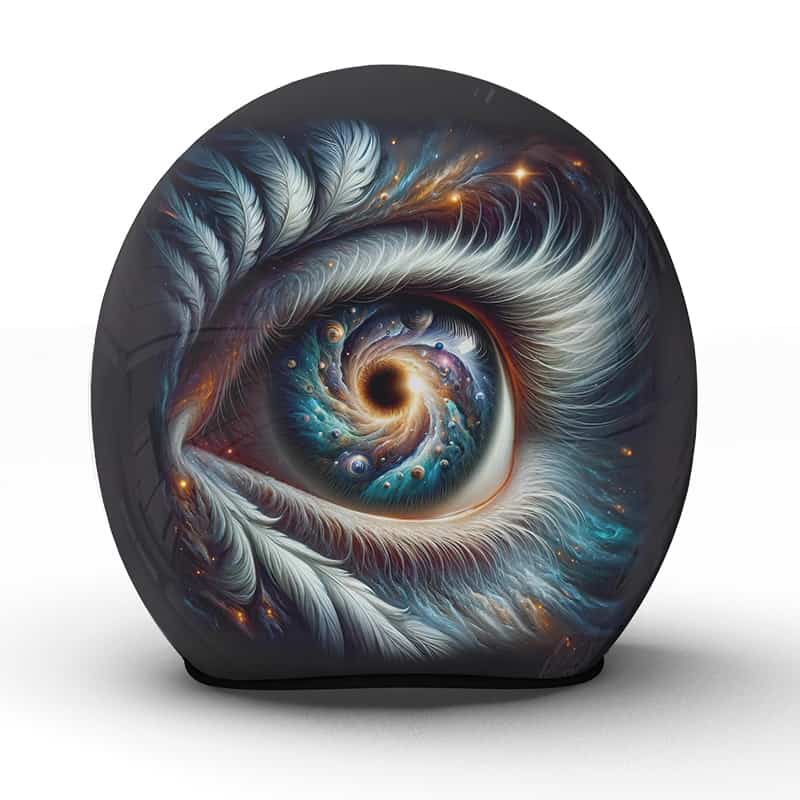Unser „Lens“ Helm, sorgfältig handgefertigt in der Manufaktur, verkörpert die Essenz kosmischer Schönheit und unendlicher Weiten. Das spiralförmige Motiv um das kosmische Auge, das an eine Galaxie erinnert, lädt den Fahrer auf eine Reise durch Raum und Zeit ein, während er auf der Straße gleitet. Es ist eine Hommage an die unendlichen Möglichkeiten, die vor uns liegen, und die Schönheit, die in der Erkundung des Unbekannten liegt. Das kunstvolle Design spiegelt die Präzision und Leidenschaft wider, mit der unsere Handwerker jede Kurve und jeden Farbton gestaltet haben, um ein wahres Kunstwerk zu schaffen, das sowohl Auge als auch Geist fesselt.