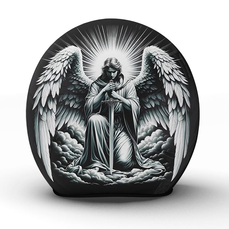 Der „Michael“ Helm ist eine Ode an den Schutz und die himmlische Führung, meisterhaft umgesetzt in unserer Manufaktur. Dieses eindrucksvolle Design zeigt eine schützende Gestalt mit ausgebreiteten Flügeln, die über einen Motorradfahrer wacht. Es symbolisiert die ständige Präsenz eines Hüters, der den Fahrer auf allen Fahrten begleitet und ihm Mut sowie Sicherheit spendet. Der Helm ist für den Motorradfahrer ein täglicher Begleiter, der die Verbindung zwischen himmlischer Bewachung und irdischer Reise darstellt.