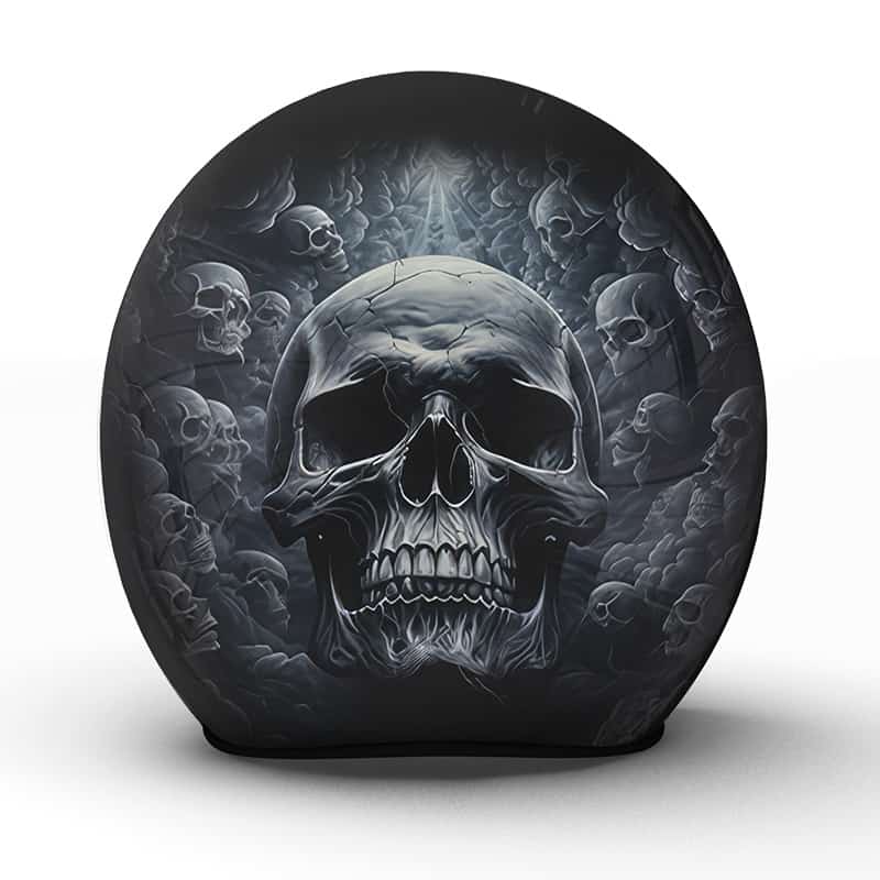 Der „Nightmare“ Helm ist ein tiefgründiges Kunstwerk, das die dunklen Seiten der Fantasie einfängt, mit einem Motiv, das sowohl Ehrfurcht als auch eine düstere Schönheit ausstrahlt. Das Bild eines einzelnen Schädels, umgeben von zahllosen verlorenen Seelen, symbolisiert die Einsamkeit und den Mut, die das Herz eines jeden Bikers auf seinen einsamen Fahrten begleiten.